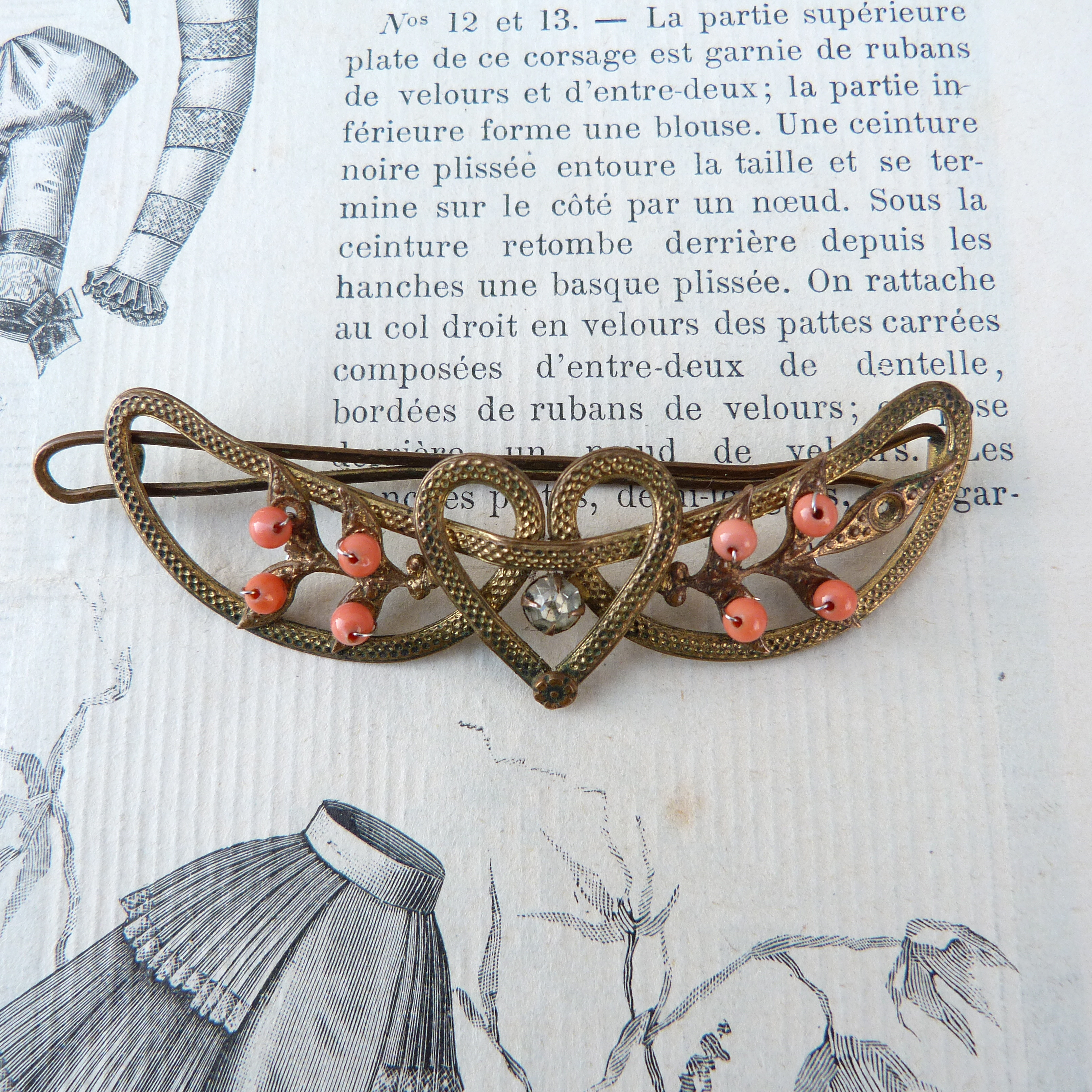 Vintage 1900 a beautiful French hairslide figure heart :adorned with rhinestones